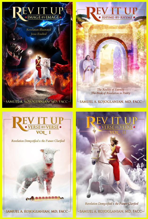 “Nobody really understands the Book of Revelation,” Kojoglanian says. “It has taken me four years to come up with this series, which is comprised of two books: Rev It Up – Verse by Verse – Vol. 1, which covers Chapters 1 through 11, and Rev It Up – Verse by Verse – Vol. 2, which covers Chapters 12 through 22. The two volumes together are almost 1,000 pages in total, but don’t let the size intimidate you. I made it very easy to understand. There are beautiful illustrations. There are little hearts throughout that clue the reader in to what is really cool. There are easy-to-understand medical references, where I discuss how medicine aligns to the Bible. There are also geopolitical references, where I draw parallels between the Book of Revelation and what’s going on in places like the United States, Israel, Russia, and China. These aren’t today’s headlines. They’re tomorrow’s headlines. All of it discussed verse-by-verse.”